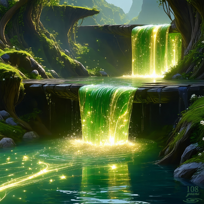 Dopo giorni di viaggio raggiunsero la Fonte Primordiale che era nascosta in una vallata dove l’aria brillava di scintille liquide di mana, dorate e dense, da sembrare un fiume di luce. Ma l’ombra antica li attendeva.