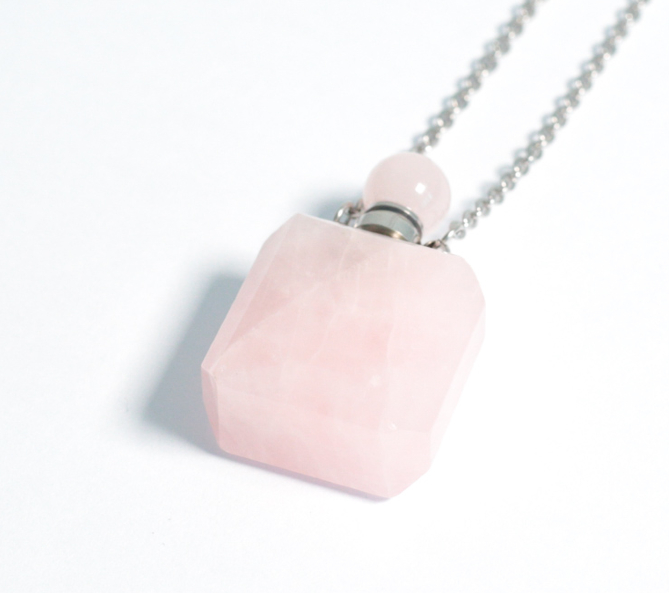 Collana per Aromaterapia con Ciondolo Scrigno in Quarzo Rosa